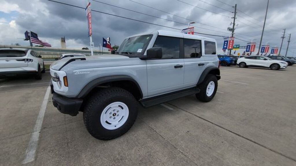 Beyond its impressive performance and features, the 2026 Ford Bronco Heritage Edition InTransit exudes a bold, distinctive style that will turn heads wherever you go. The unique 17" white wheels and classic Bronco silhouette pay homage to the iconic legacy, while modern touches like the LED lighting and sleek exterior design give it a contemporary edge.