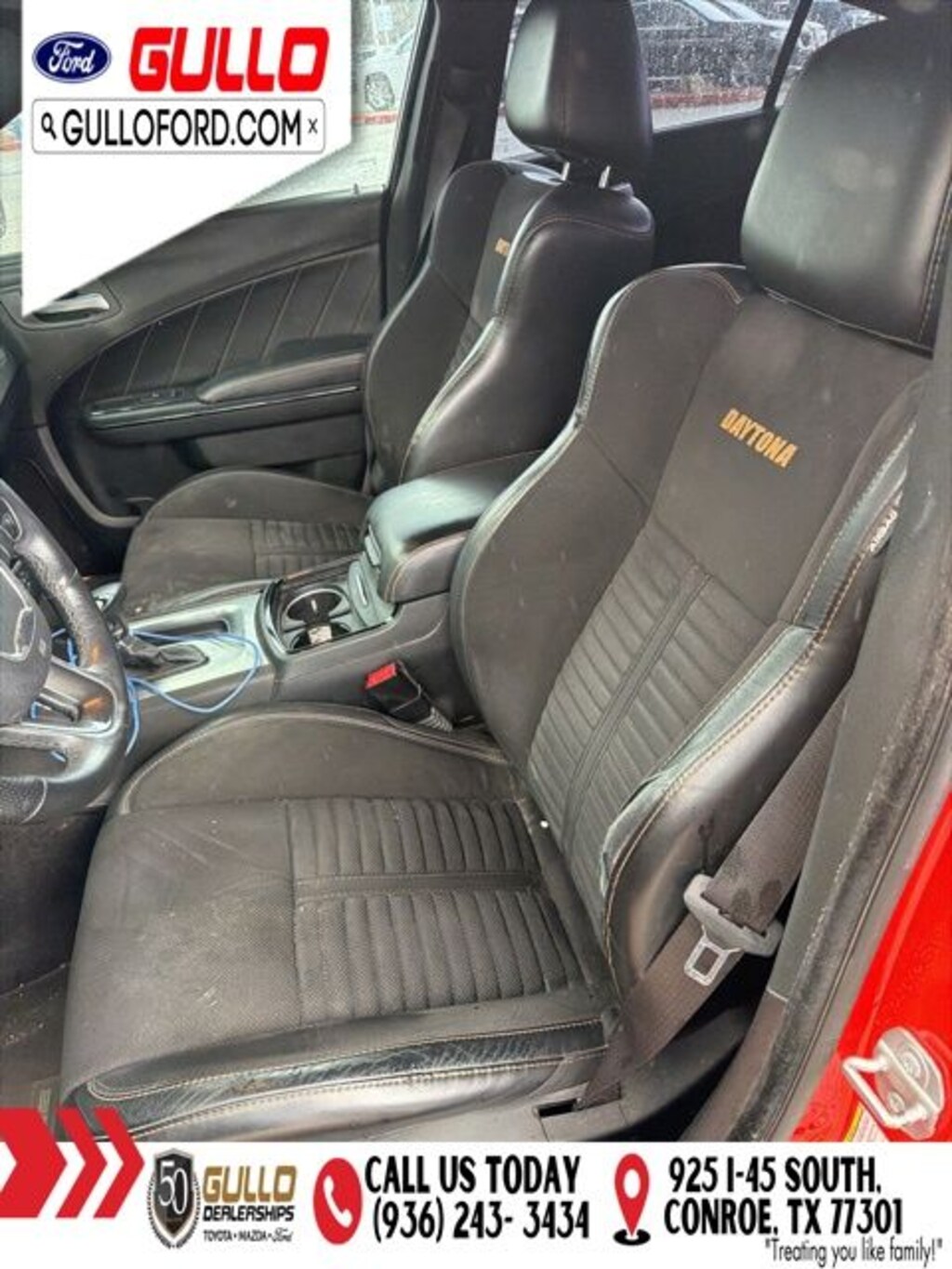 The exterior of this Charger is a true head-turner, adorned in a stunning Orange hue and complemented by the iconic Daytona styling cues. The bold 1-piece performance spoiler, functional hood scoop, and Satin Black Charger decklid badge all contribute to the vehicle's aggressive and athletic presence.