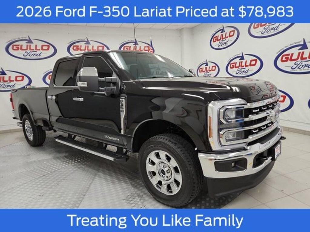 CARFAX One-Owner. Black Metallic 2026 Ford F-350SD Lariat 4WD 10-Speed Automatic Power Stroke 6.7L V8 DI 32V OHV Turbodiesel Disclaimer: Although every reasonable effort has been made to ensure the accuracy of the informatio, 4WD, 6" Angular Bright Anodized Step Bars, Chrome Door Handles, Chrome Exhaust Tip, Chrome Package, Ford Connectivity Package (1-Year Included), FX4 Off-Road Package, Hill Descent Control, Internet access capable: 5G Modem - Ford Connectivity Package, Off-Road Specifically Tuned Shock Absorbers, Order Code 618A, Unique Chrome Mirror Caps, Unique FX4 Off-Road Box Decal, Wheels: 20" Chrome PVD Aluminum.
