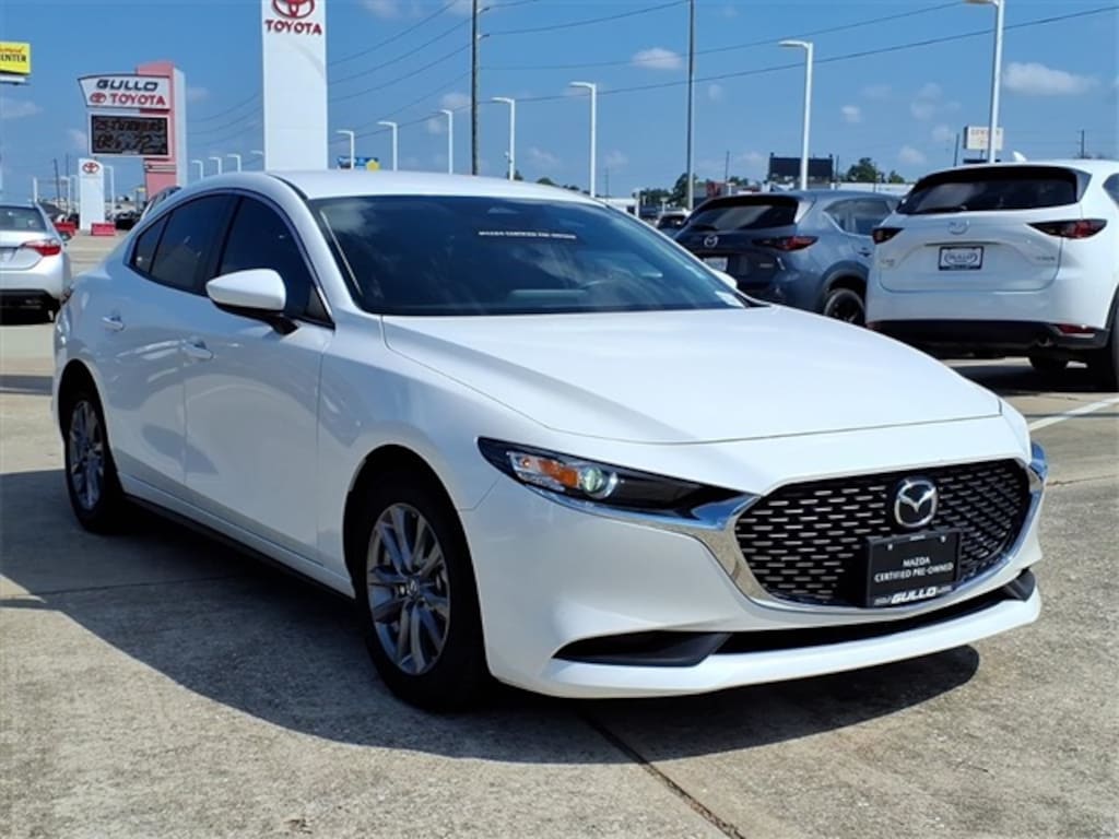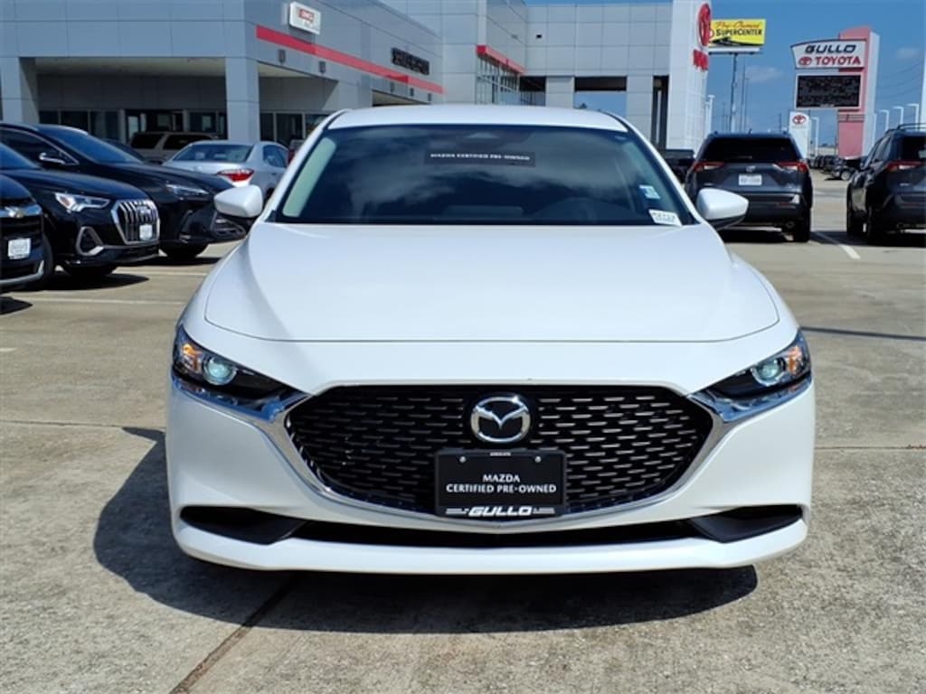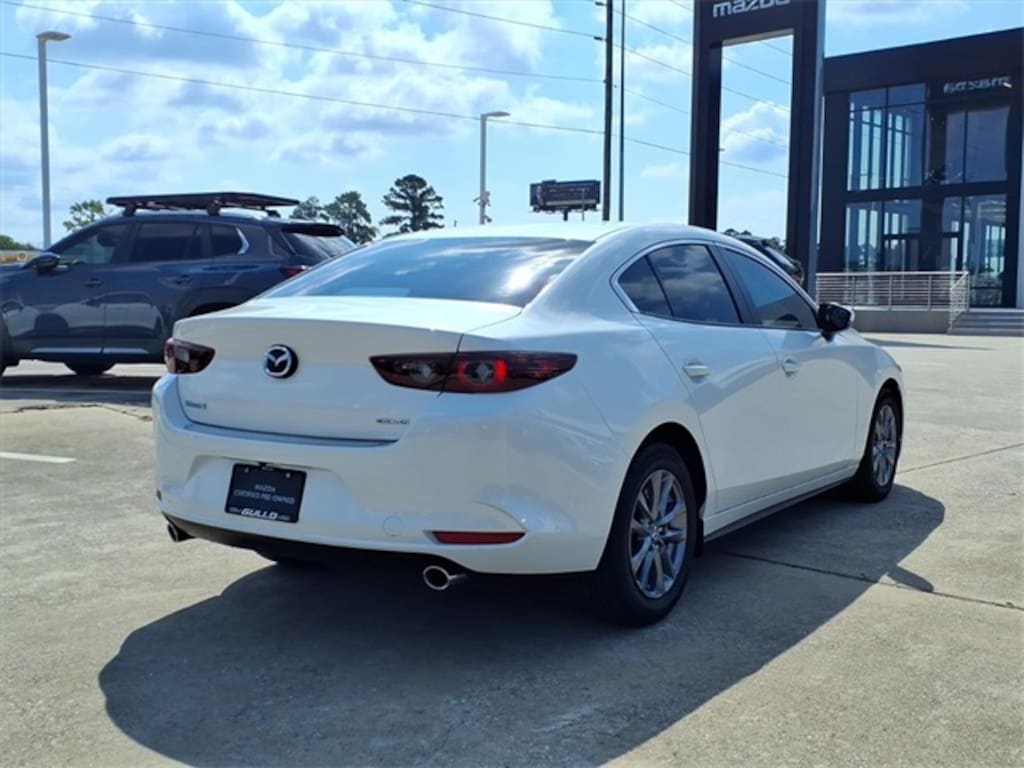 This 2025 Mazda Mazda3 2.5 S in Snowflake White Pearl Mica comes with the following features: 2.5L I4 DOHC 16V LEV3-SULEV30 191hp 6-Speed Automatic FWD Mazda Certified Pre-Owned Certified Mazda Certified Pre-Owned Certified, 16" x 6.5J Aluminum Alloy Wheels, 4-Wheel Disc Brakes, 6 Speakers, ABS brakes, Air Conditioning, Alloy wheels, AM/FM radio, AppLink/Apple CarPlay and Android Auto, Auto High-beam Headlights, Brake assist, Bumpers: body-color, Cloth Seat Trim, Compass, Delay-off headlights, Driver door bin, Driver vanity mirror, Dual front impact airbags, Dual front side impact airbags, Electronic Stability Control, Emergency communication system: Mazda Connected Services (1-year complimentary trial included), Exterior Parking Camera Rear, Front anti-roll bar, Front Bucket Seats, Front Center Armrest, Front reading lights, Front wheel independent suspension, Fully automatic headlights, Illuminated entry, Knee airbag, Low tire pressure warning, MAZDA CONNECT Infotainment System, Occupant sensing airbag, Outside temperature display, Overhead airbag, Overhead console, Panic alarm, Passenger door bin, Passenger vanity mirror, Power door mirrors, Power steering, Power windows, Radio data system, Radio: AM/FM Audio System, Rear side impact airbag, Rear window defroster, Remote keyless entry, Snowflake White Pearl Mica Paint Charge, Speed control, Speed-sensing steering, Split folding rear seat, Steering wheel mounted audio controls, Tachometer, Telescoping steering wheel, Tilt steering wheel, Traction control, Trip computer, Variably intermittent wipers, and Wheel Locks.
