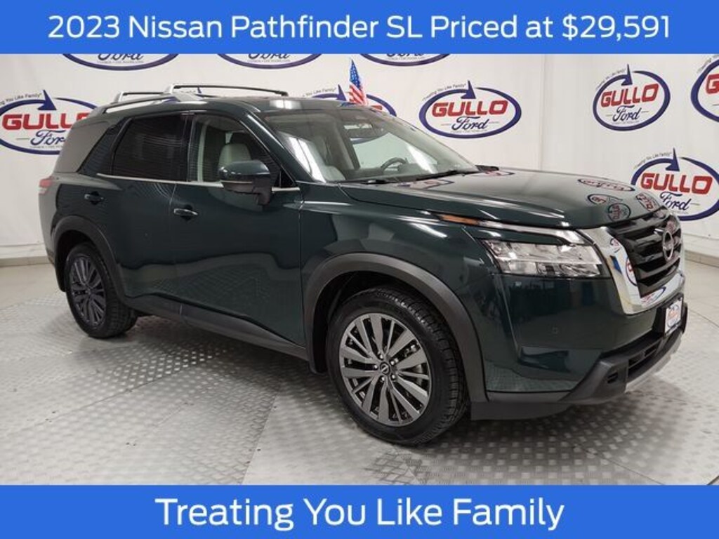 Discover the exceptional 2023 Nissan Pathfinder SL, a versatile and well-equipped SUV that's ready to elevate your driving experience. With its striking green exterior and powerful V6 engine, this Pathfinder is a true standout in its class.